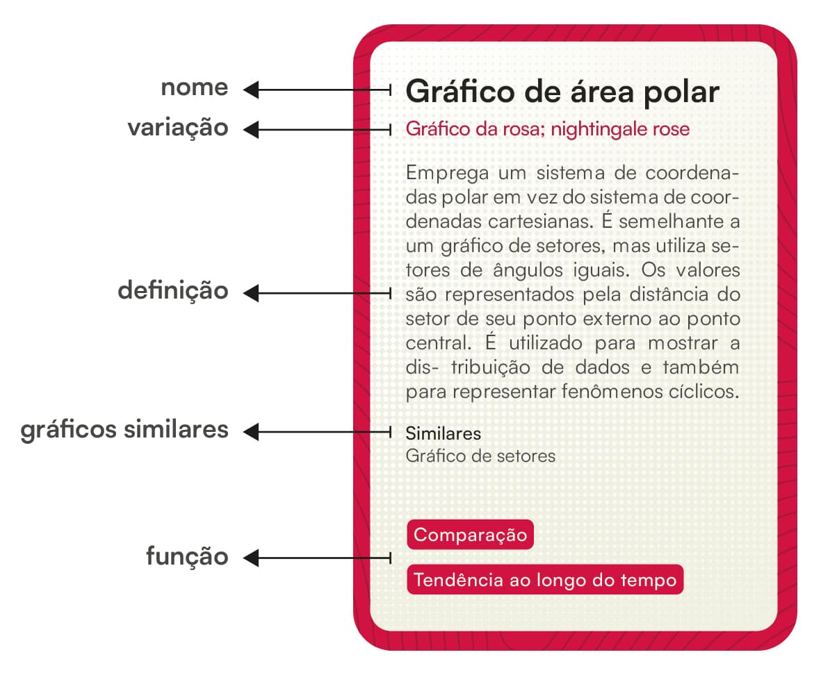 Cada carta de definição é organizada com o nome do gráfico, sua variação (quando houver), a definição do gráfico, gráficos similares (quando houver) e suas principais funções, veja a figura abaixo: