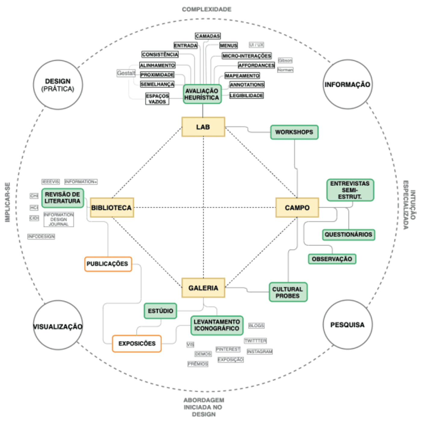 Em “Interações entre pesquisa e prática em visualização de informação”, Doris Kosminsky trata de como as representações visuais, dos grandes conjuntos de dados, facilitam a compreensão da informação. No artigo, a autora apresenta o desenvolvimento de um diagrama criado com o objetivo de mapear as relações entre pesquisa e prática no campo da visualização de dados, ressaltando a importância da aproximação entre as duas, como forma de sistematizar saberes.
