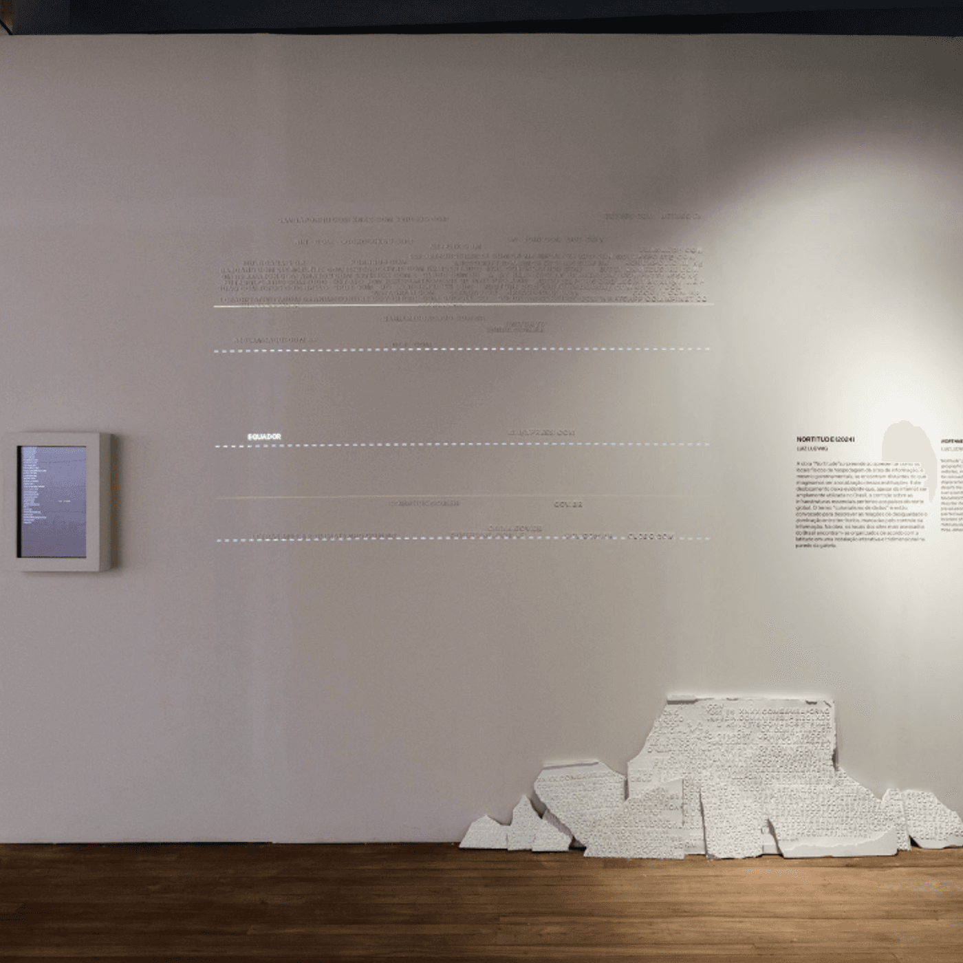 “Northness” is an installation that maps the latitudes of the servers that host the most popular websites in Brazil. Composed of three-dimensional typographic sculptures, a touch screen and projection, the work allows the public to visualize and locate the servers of the one hundred most accessed websites in Brazil. This installation is part of research in artistic data visualization that addresses issues of the data infrastructure sustaining our society, highlighting the Global North’s dominance in data flows. “Northness” was featured in the exhibition “Numerical Existence: Emergencies,” which took place in 2024 at the Futuros Cultural Center in Brazil.